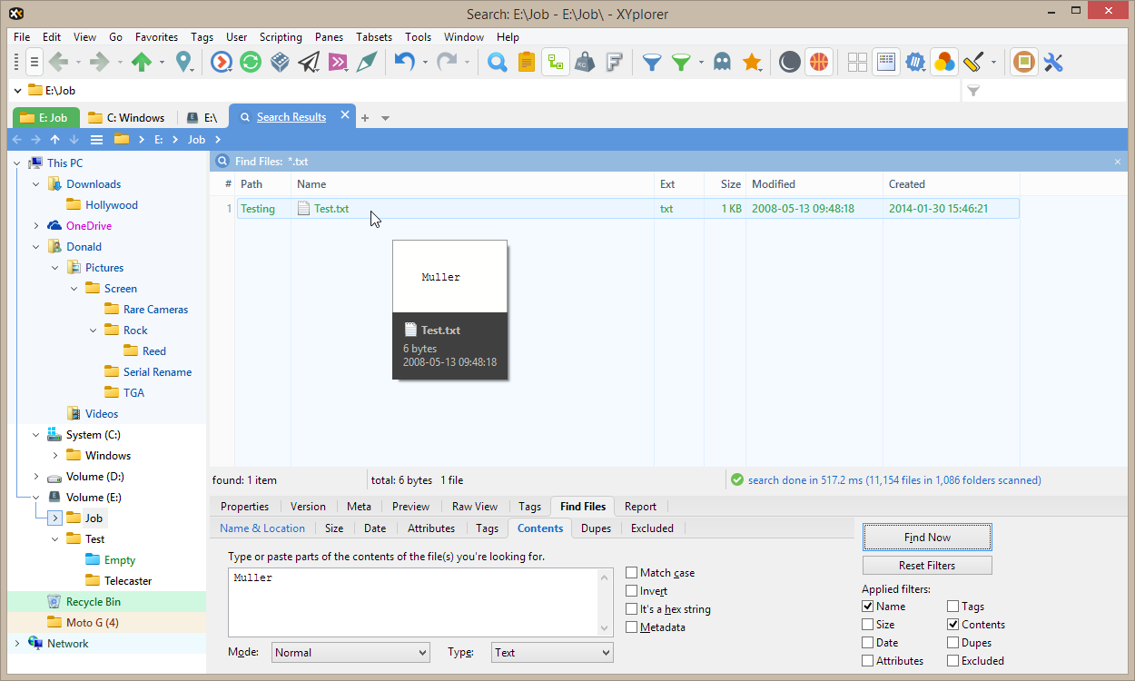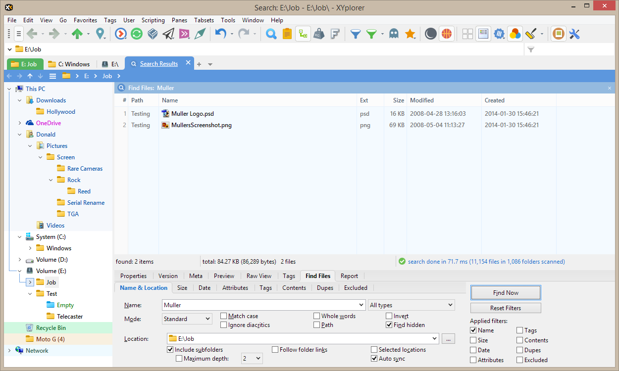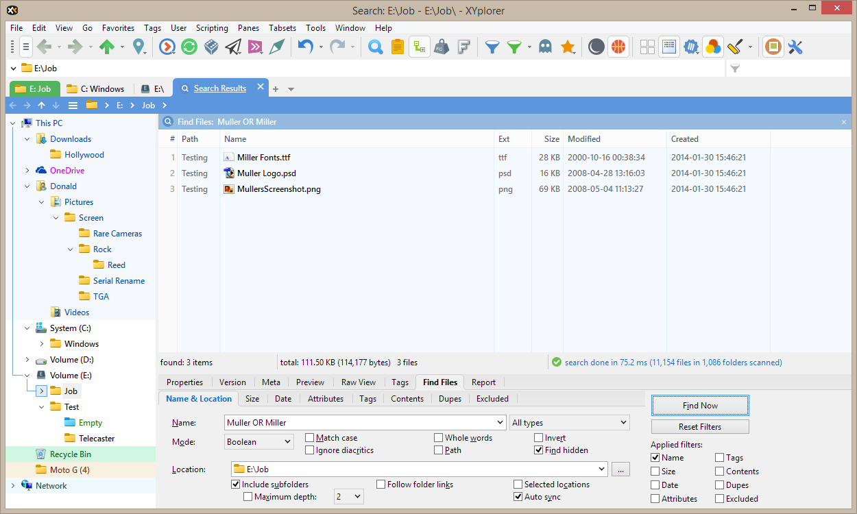 您正在尋找檔名中包含"Muller"的文件,您知道它在 E:\Job\ 文件夾的某個位置。