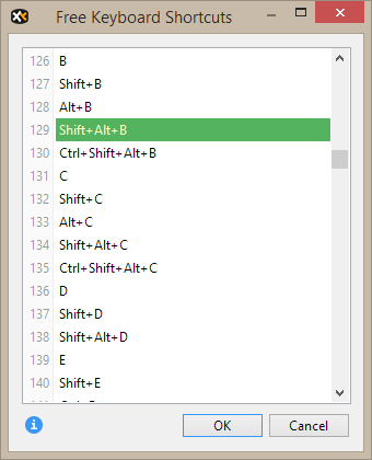 "所有空閒快捷鍵..."按鈕顯示當前所有未使用的快捷鍵列表,使您可以輕鬆找到並選擇一個容易記憶的快捷鍵。