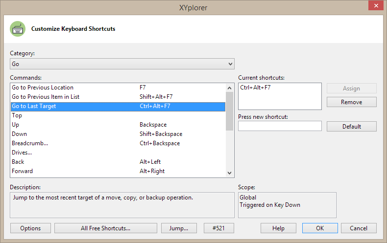 個性化快捷鍵是最大化工作效率的關鍵。在 XYplorer 中,您可以自由且輕鬆地將數百種組合鍵分配給數百個功能,包括您自己的自定義功能和腳本。XYplorer 能做的幾乎一切,您都可以用一個自選的按鍵來完成。