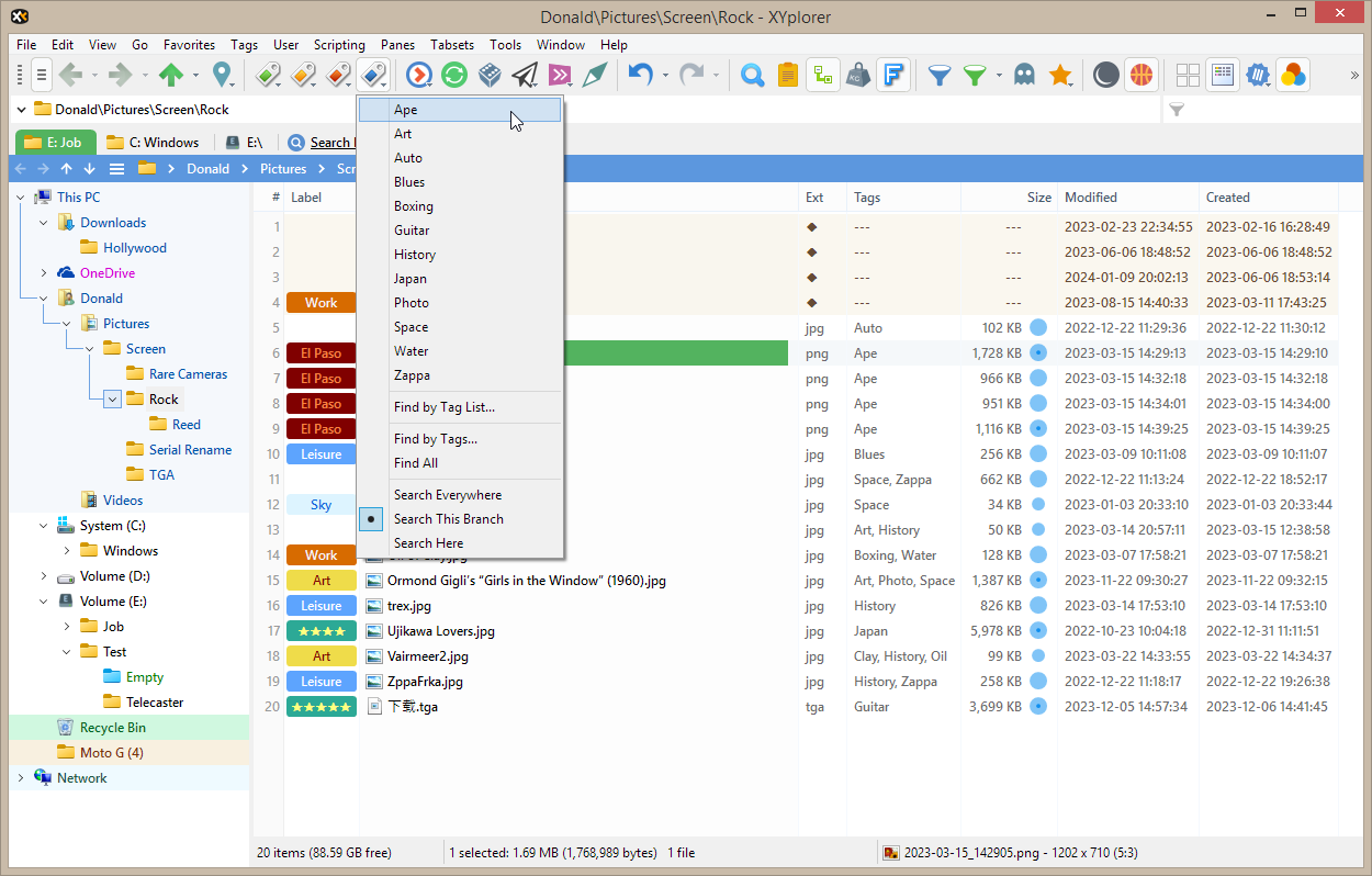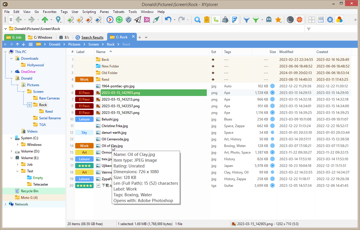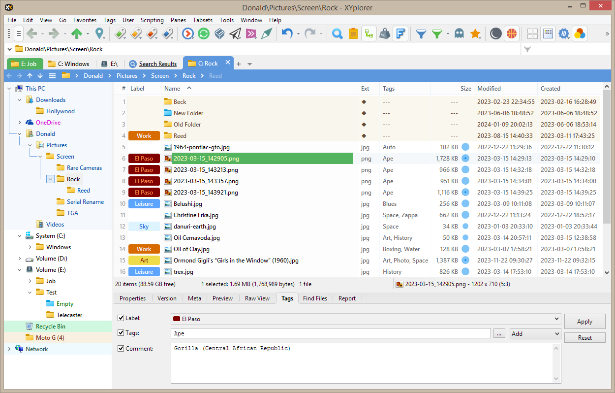 XYplorer 提供標籤式檔案管理作為傳統層級式樹形檔案管理的替代方案。您可以為任何文件或文件夾分配任意數量的標籤。是的,任何文件,不僅僅是文檔和媒體文件。