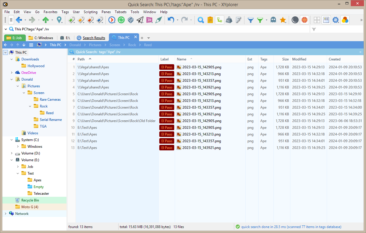 - 使用標籤選項卡搜索標記、標籤和備註(XYplorer 10.90 起)