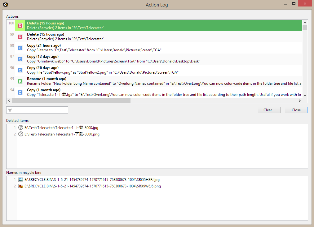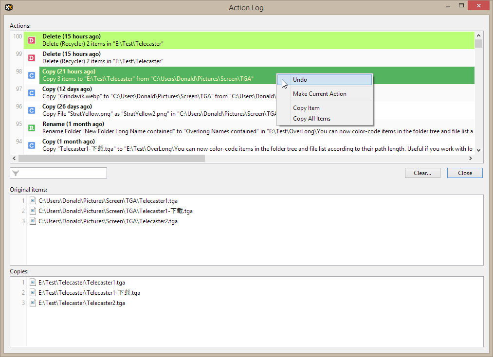 XYplorer 為移動、複製、重命名、刪除和新建等檔案操作提供多級撤銷/重做功能。最多記錄 256 個用戶操作,可在任何時候撤銷。操作甚至在會話之間保留,所以您今天就能修復昨天犯的錯誤——只需一次點擊。